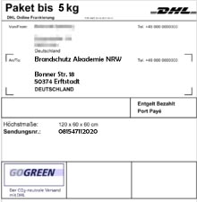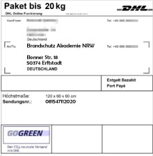 Die Retouren Marke bringen Sie kleben Sie nun auf das Paket und bringen es in eine Postdienststelle bzw. in einen DHL-Shop.